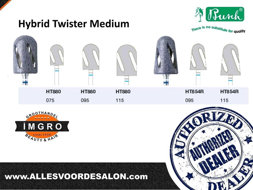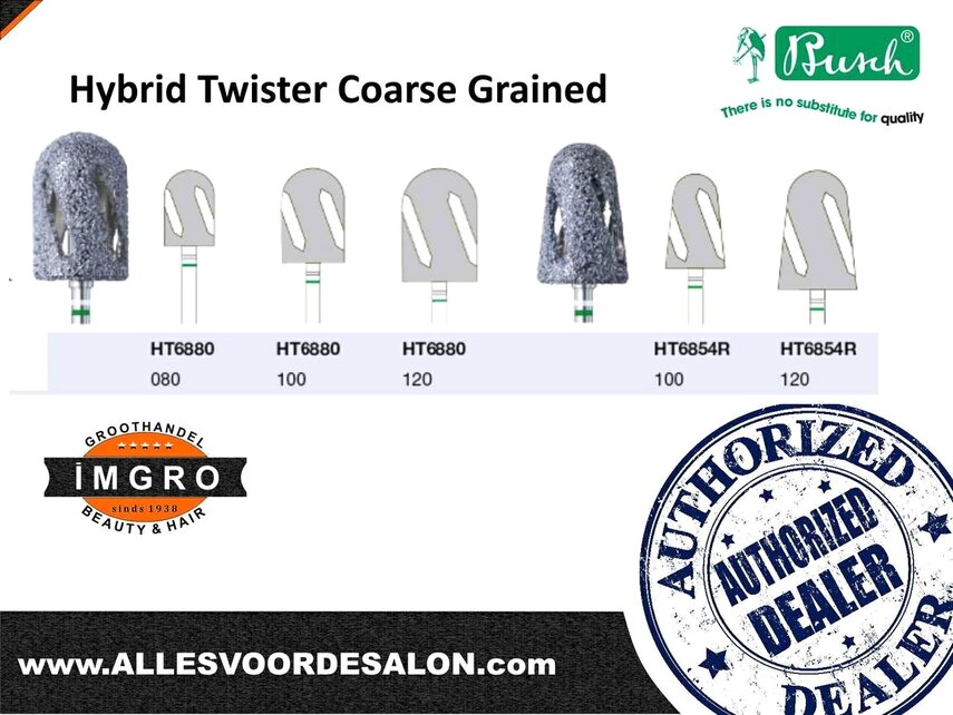 De Hybride HT880-075 is de frees die zijn werking vindt in de perfecte combinatie van de slijpeigenschappen van een mengsel van Medium keramisch en diamant slijppoeder. Deze Hybride frees is ideaal voor het verwijderen van hard eelt.