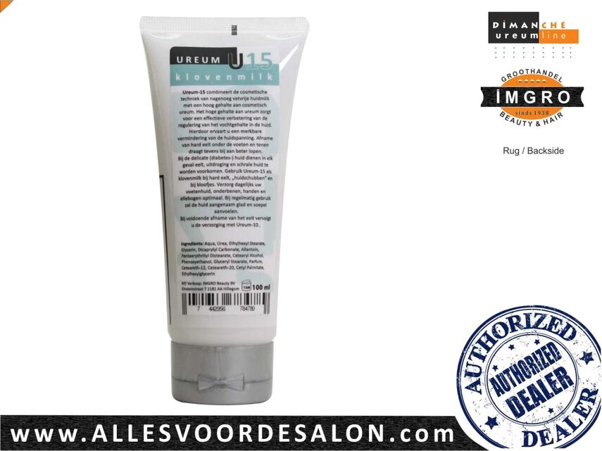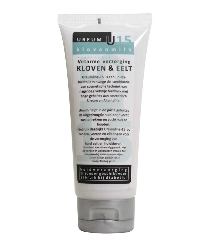 Gebruik Ureum-15 als klovenmilk bij de zéér droge huid. Ureum-15 is nagenoeg vetvrij en bevat 15% hoogwaardig cosmetisch ureum. Gebruik Ureum-15 als probleemoplossende huidmilk bij de zéér droge , ruwe huid en bij harde (eelt)kloven. In eelt en droge huid kunnen kloofjes ontstaan. In elk geval dienen bij de delicate (diabetes-) huid uitdroging en ruwe huid te worden voorkomen. Ureum-15 huidmilk wordt ook wel de klovenmilk genoemd.