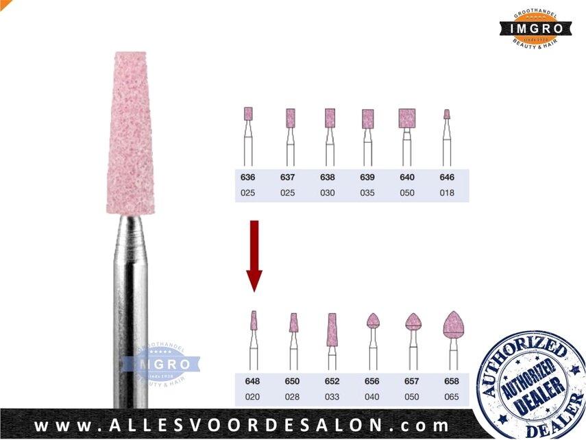 Nail drill bit 648-020 is a fine grinding drill bit made of high-grade corundum. This nail drill bit is suitable for fine grinding work on nails and cuticles.